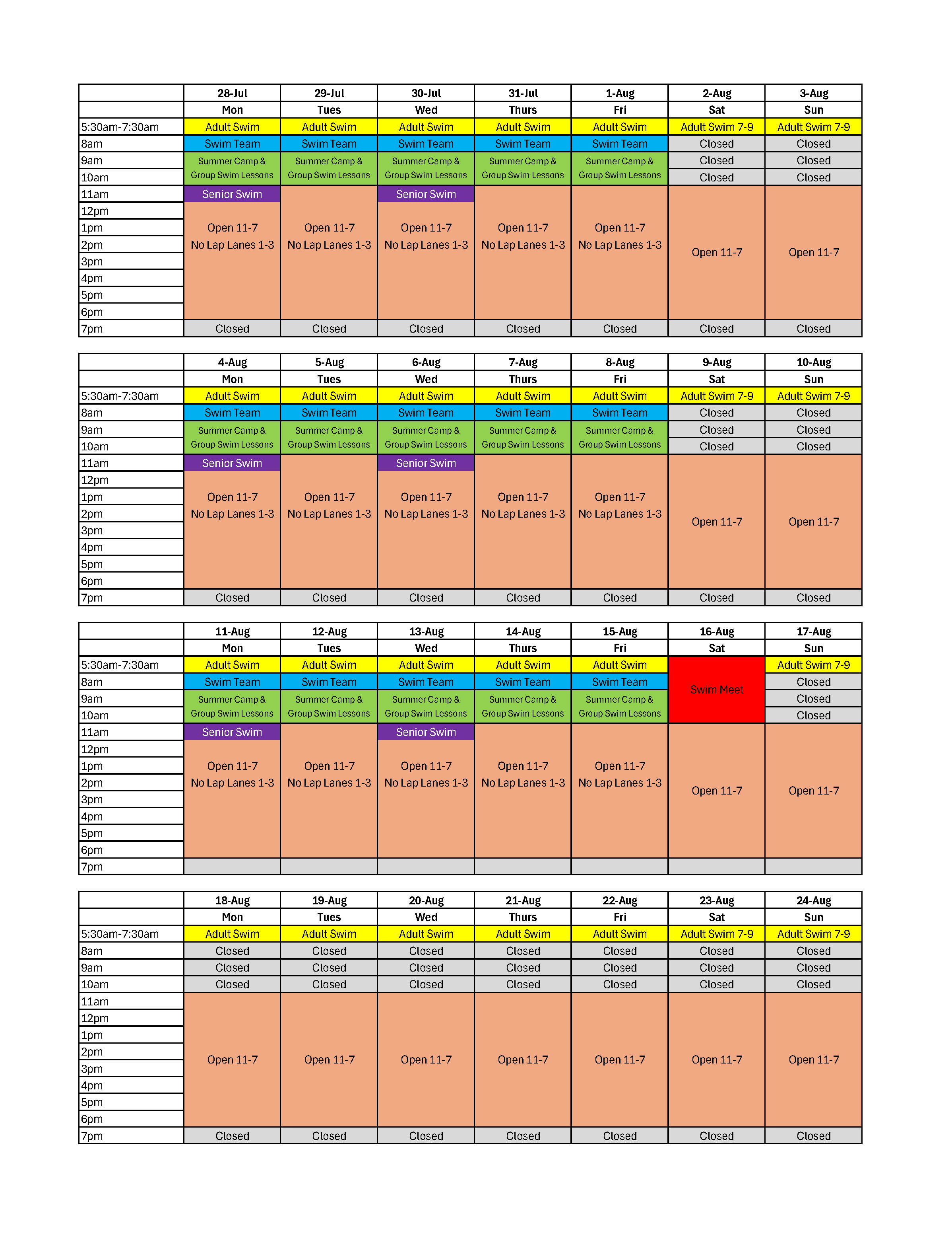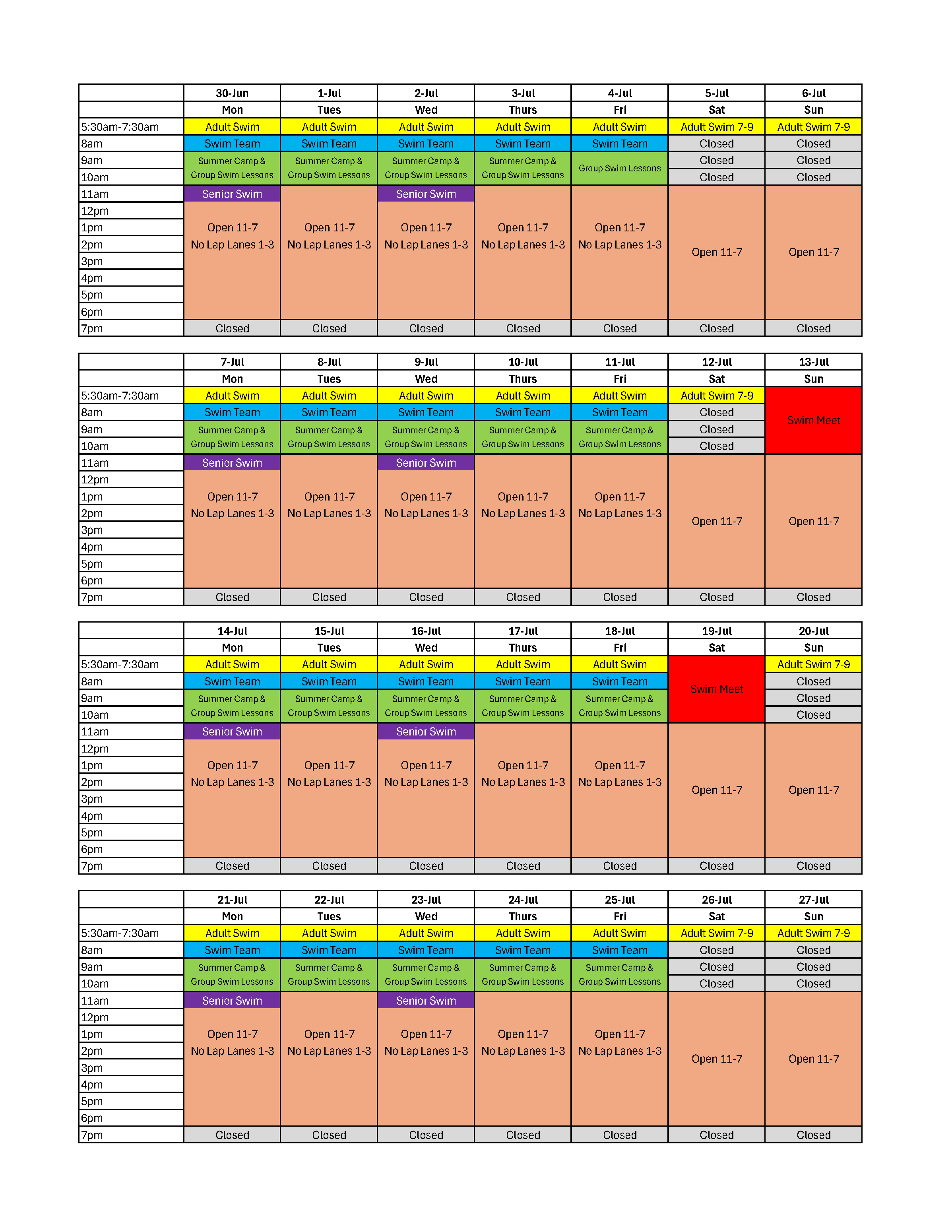 2025 Pool Schedule (Updated 7-1-2025)