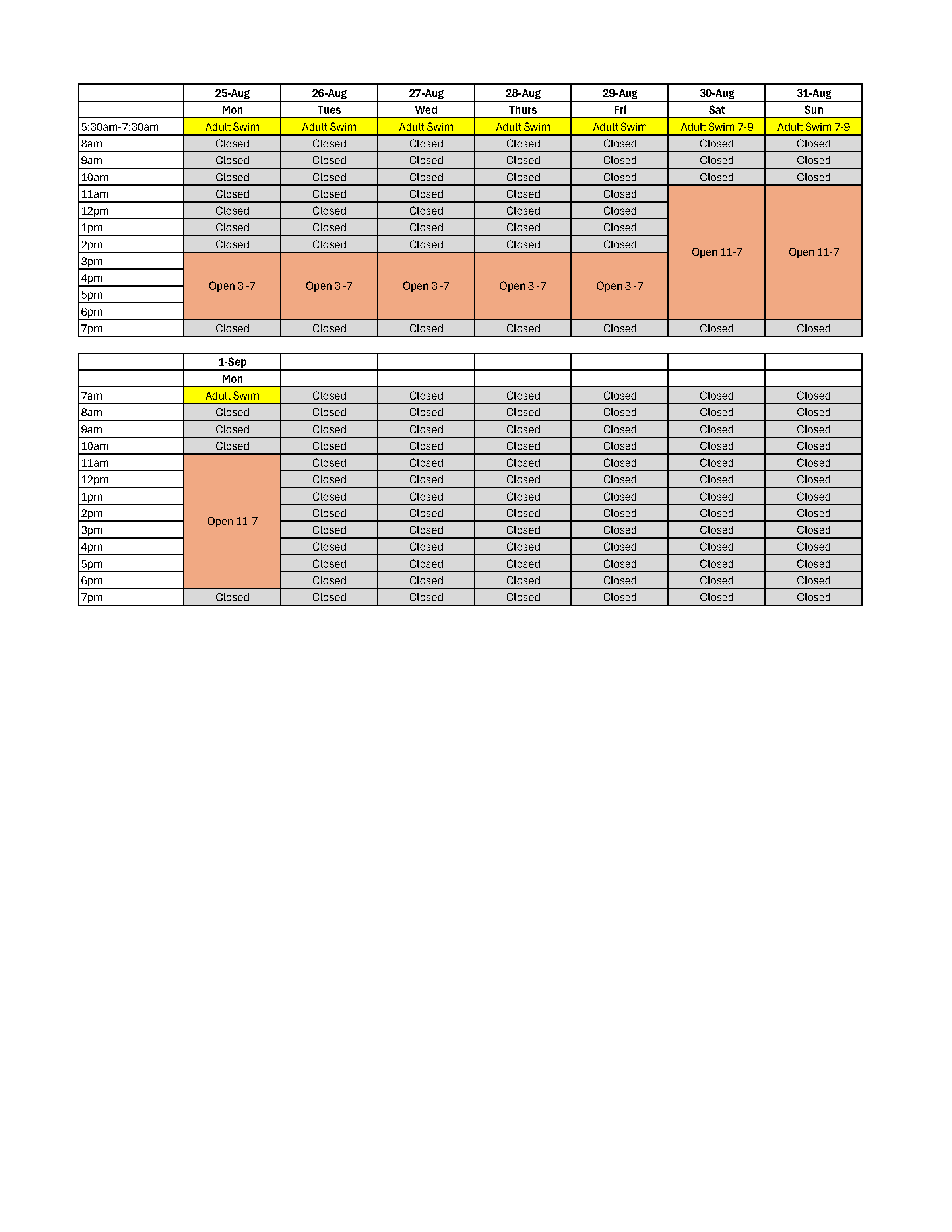 2025 Pool Schedule
